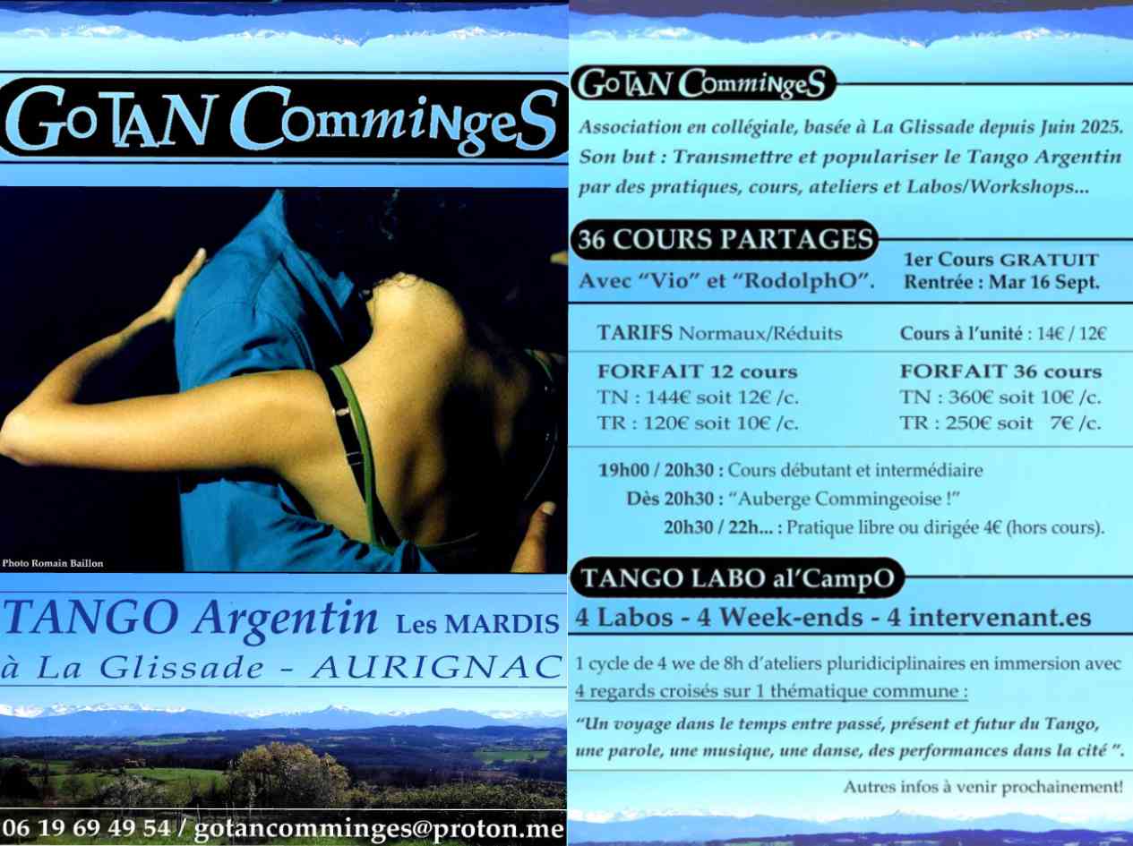 Une formule unique de 1h30 de cours suivit d’une auberge commingeoise coviviale suivit d’une pratique libre de la danse jusqu’à la fin de la soirée.